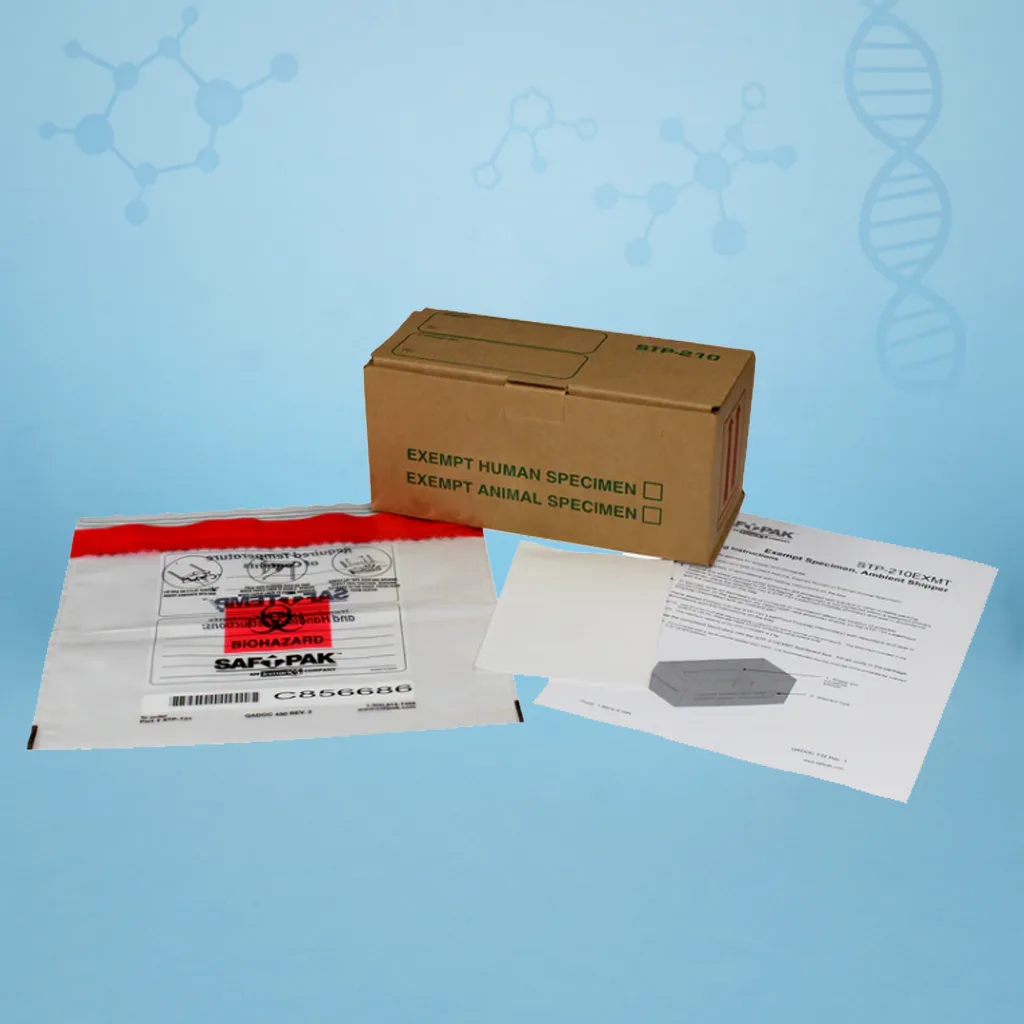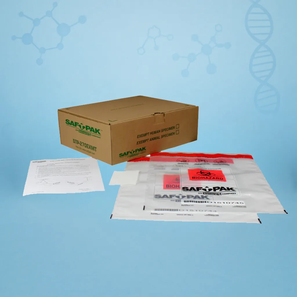 When shipping patient or animal specimens with minimal likelihood of pathogenic presence, use Exempt Specimen packaging for simple compliance. These solutions are ideal for routine diagnostic, screening, insurance, employment, and research samples not regulated as infectious under IATA, DOT, or USPS protocols.
