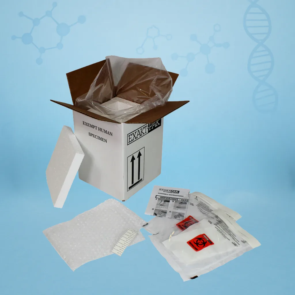 • Flexible Transport Conditions: All packaging is compatible with ambient, refrigerated, or frozen shipping—supporting ice packs or dry ice, with venting built in for compliance and extended specimen viability.