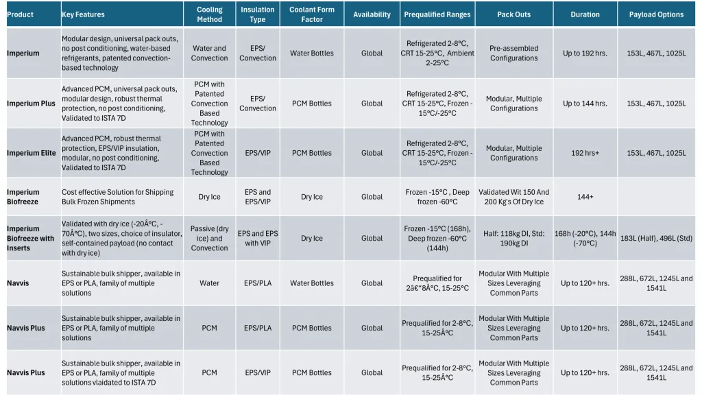 Navigate our advanced portfolio of bulk cold chain pallet shippers engineered for large-scale, high-volume temperature-sensitive shipments. The product grid provides an at-a-glance comparison of each bulk solution by name, including validated temperature ranges, payload sizes, insulation technology, durability, and eco-friendly materials.